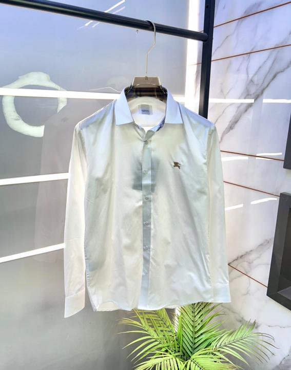 Burberr y White Premium Embroidery Logo Shirt With Brand Box Packing And Carry Bag F3451-WH