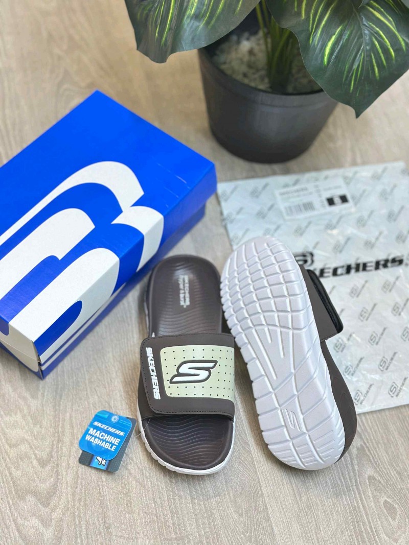 Skecher.s Go Recover Adjust Premium Brown White Slides